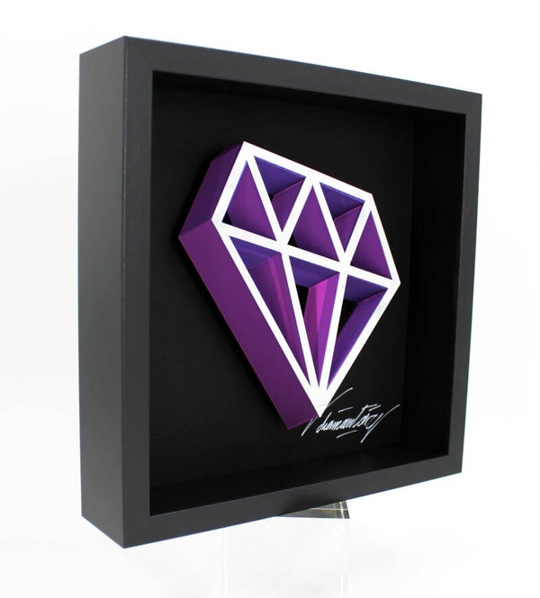 Ce cadre associe une sculpture en impression 3D et un miroir en plexiglas, créant une illusion captivante qui évolue selon l’angle et la lumière.