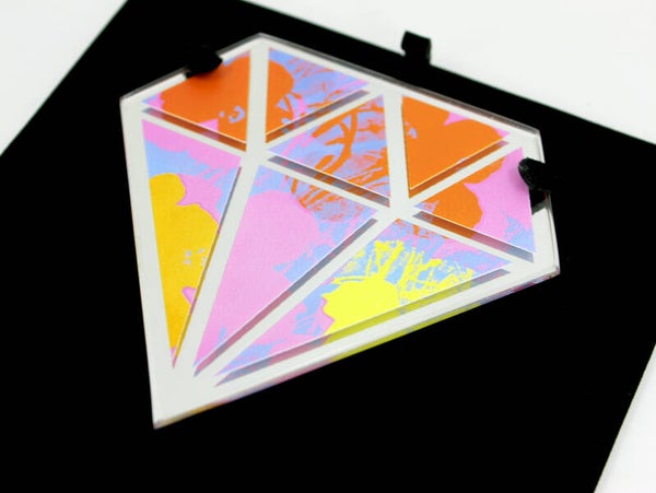 Chaque diamant est réalisé en miroir de 3 mm d’épaisseur, imprimé en UV haute définition pour un rendu éclatant et durable. Fabriqués artisanalement dans mon atelier parisien, ces diamants mêlent précision, brillance et esthétique pop.