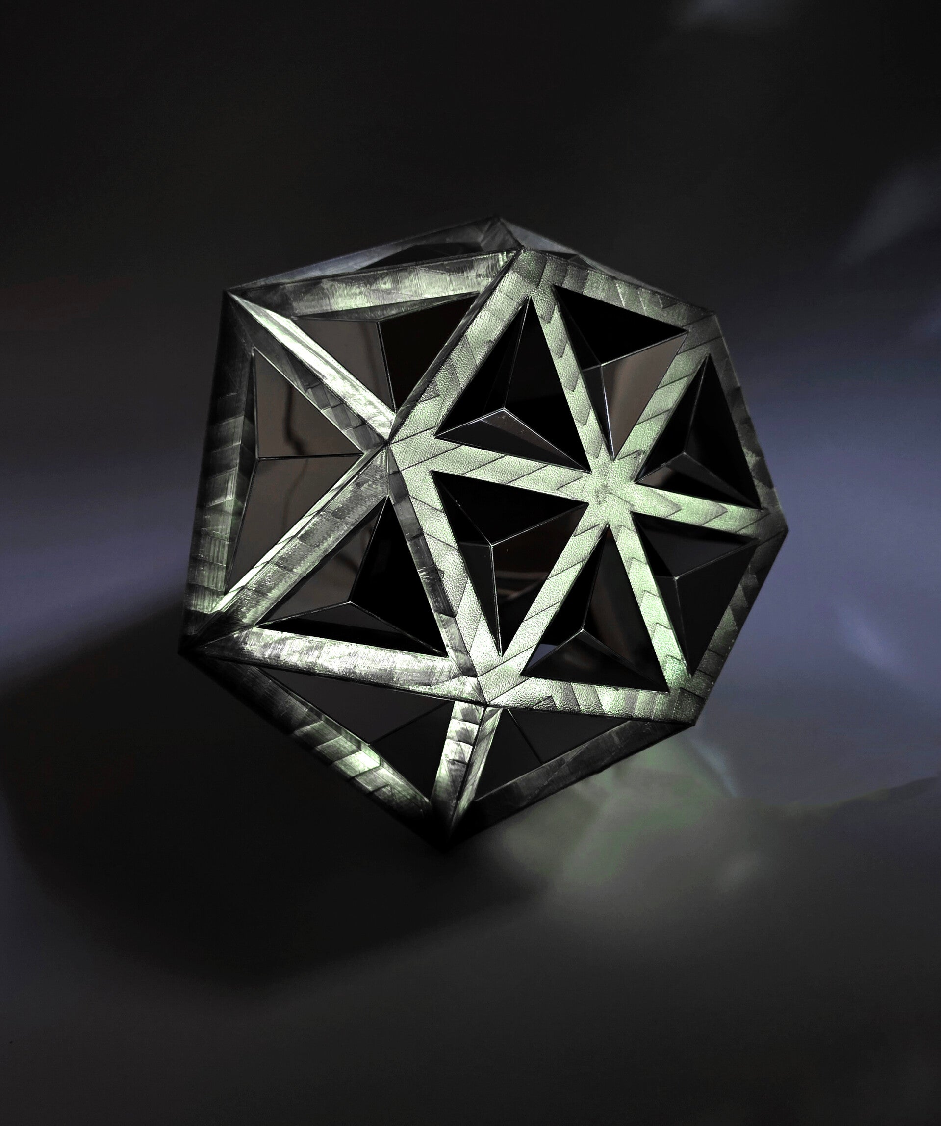Éclairez votre espace avec Prisma Light, une sculpture lumineuse contemporaine alliant forme géométrique, effet miroir et raffinement artisanal. Conçue et fabriquée dans mon atelier à Paris, cette œuvre est imprimée en 3D en PETG avant d’être recouverte manuellement de miroir acrylique. Le résultat ? Un prisme lumineux, hypnotique, qui joue avec la lumière et l’espace environnant.