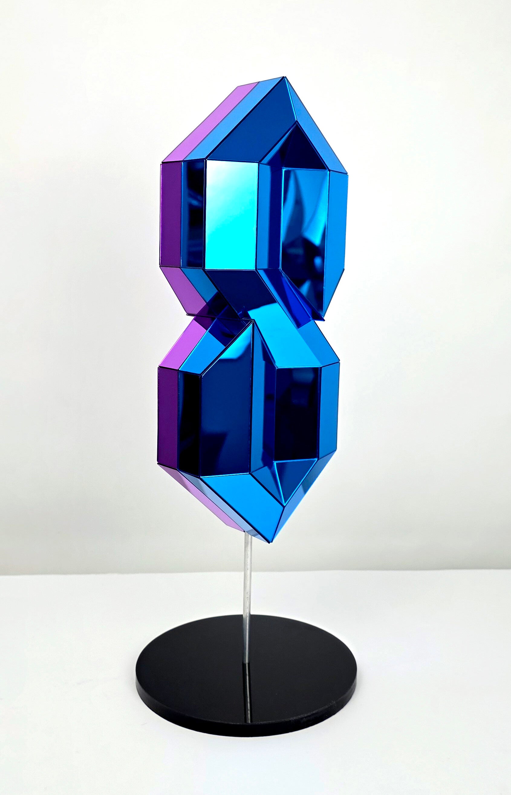 Grâce à un assemblage de PLA, de miroirs acryliques et d’aluminium, la lettre se transforme en totem géométrique, entre design contemporain et souvenir collectif.
