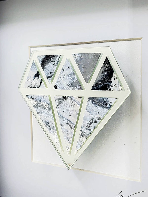 Cadre en bois, peinture acrylique sur miroir 4mm