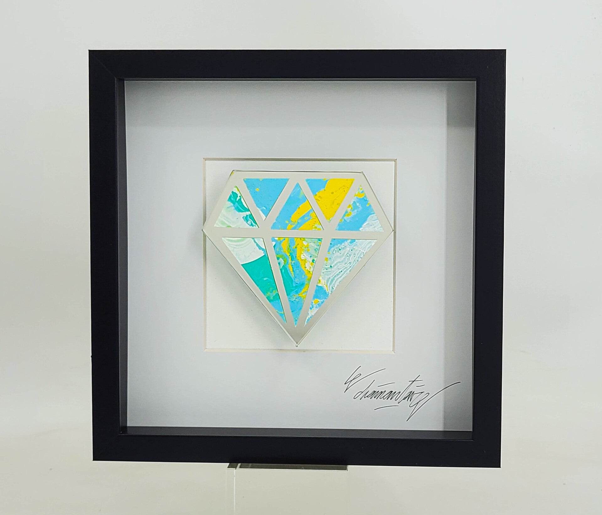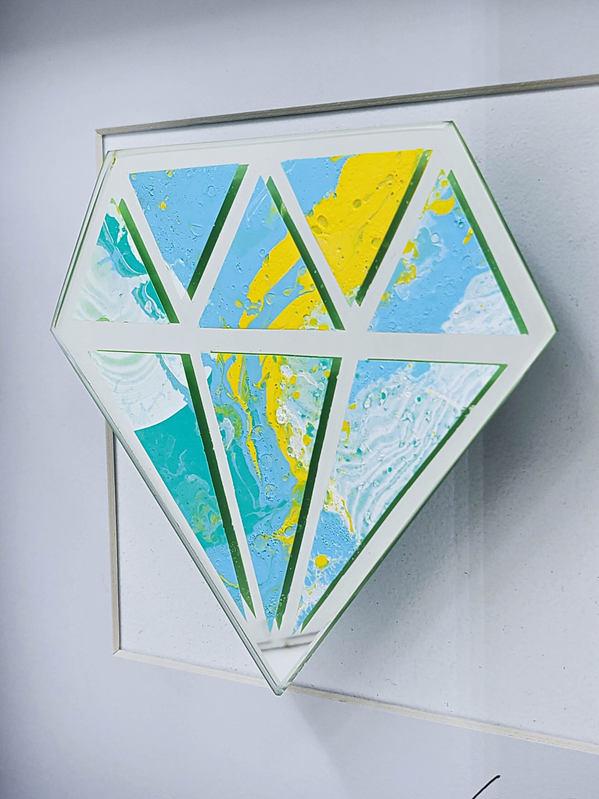 Cadre en bois, peinture acrylique sur miroir 4mm