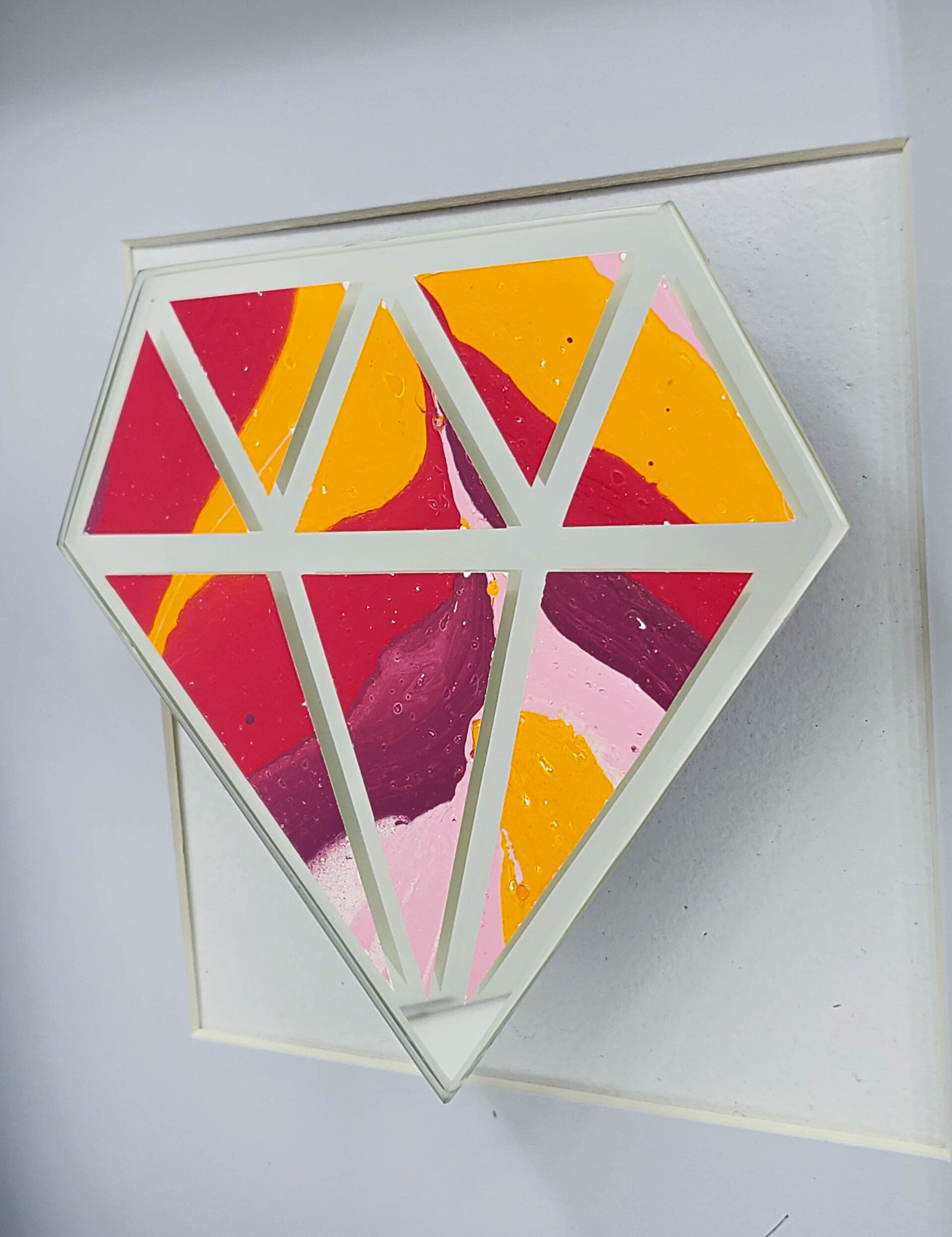 Cadre en bois, peinture acrylique sur miroir 4mm